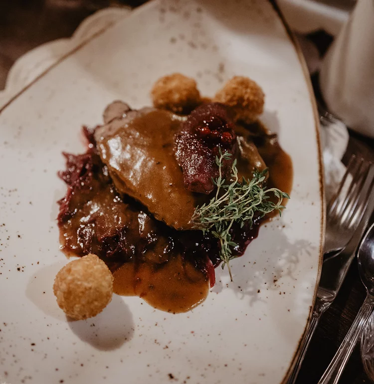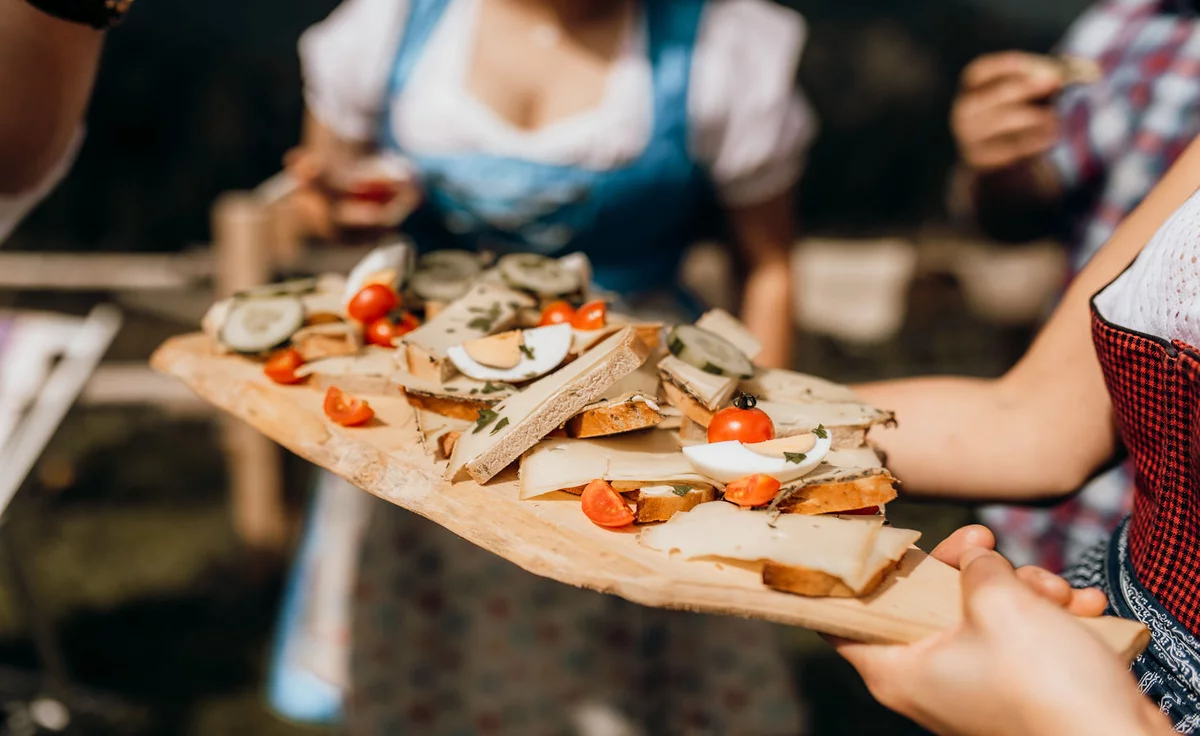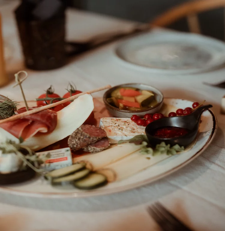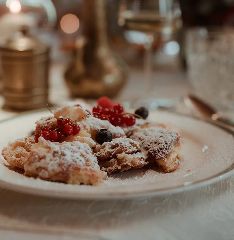 Wir kochen direkt auf der Alm – alles selbst, mit Liebe und Handwerk. Kräuter wachsen vor der Tür, das Rindfleisch kommt vom eigenen Biohof im Tal. Brot, Sirupe und Marmeladen sind hausgemacht. Viele Gerichte tragen Geschichte – wie der „Nani-Schmoan“, unser Kaiserschmarrn, benannt nach der früheren Almwirtin Anna.